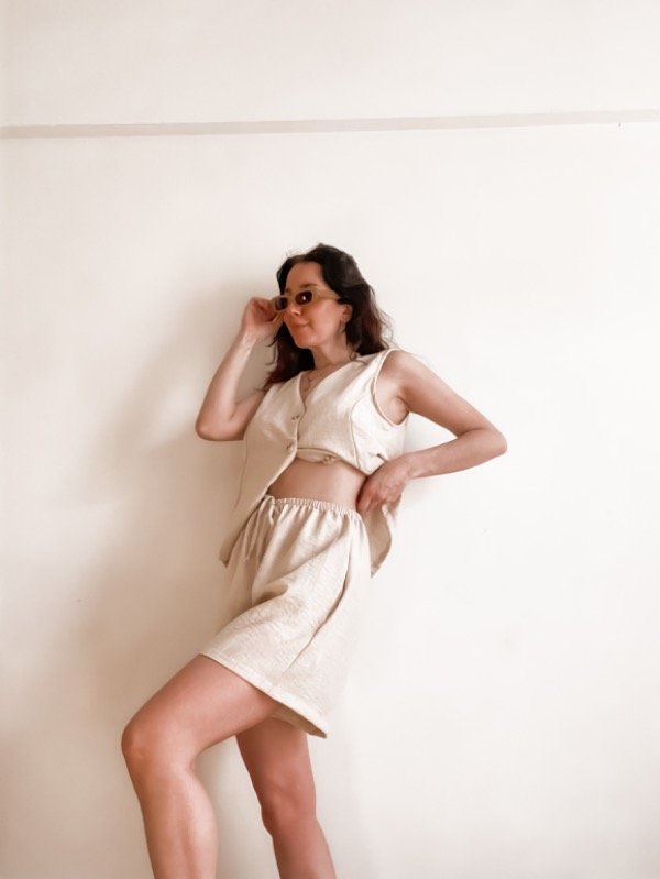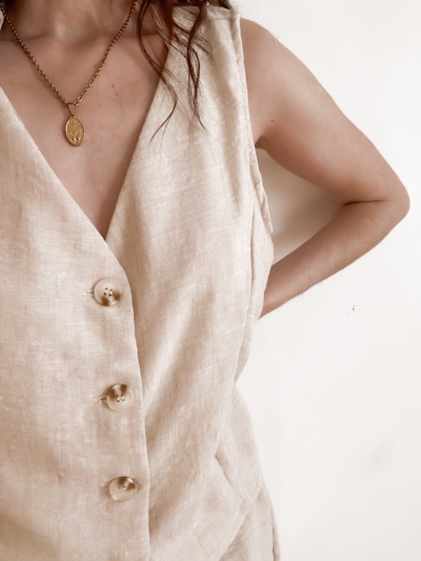 Set compuesto por chaleco abotonado + bermuda 100% lino algodón