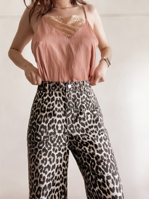 Pantalón de gabardina estampada animal print.