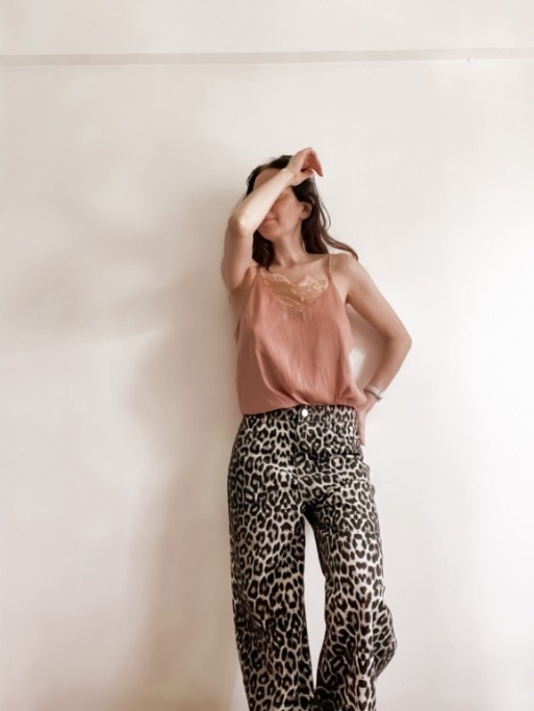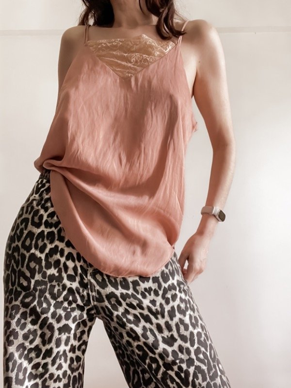 Blusa de satén larga con detalle de puntilla al frente y doble bretel