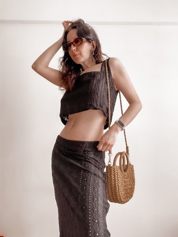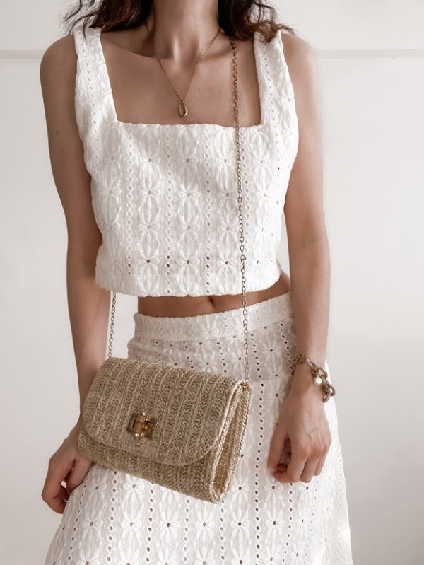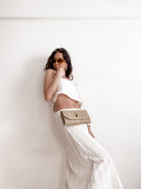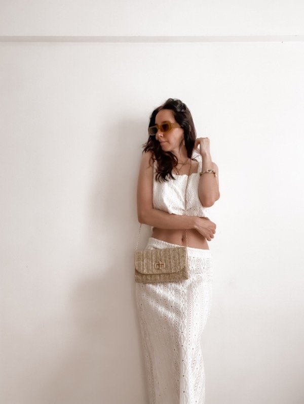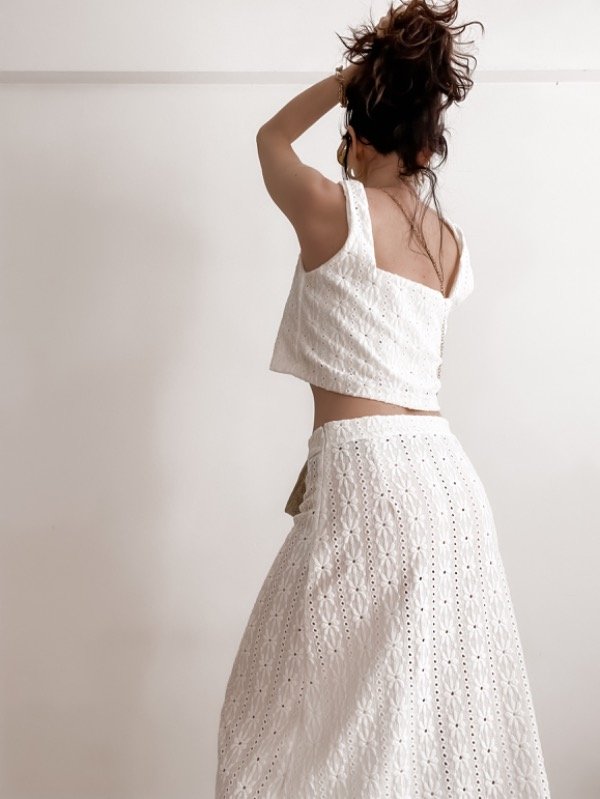 Set de broderie compuesto por top recto + falda (largo hasta gemelos)