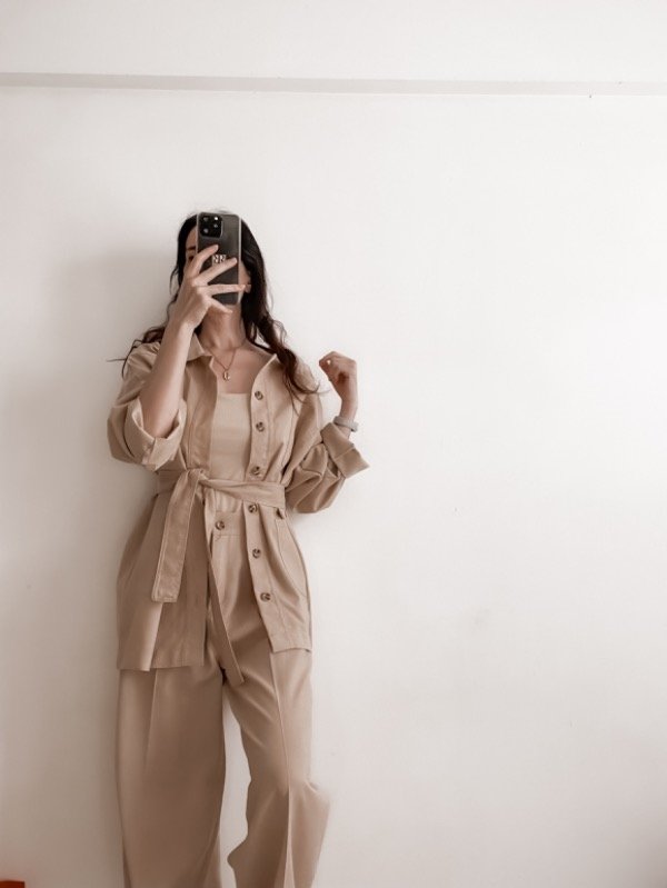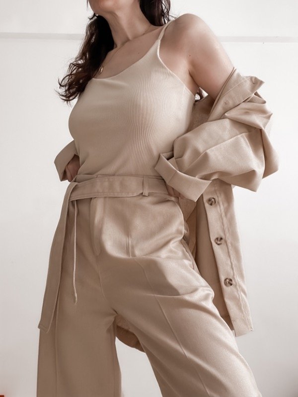 Set compuesto por pantalón + chaqueta de lino.